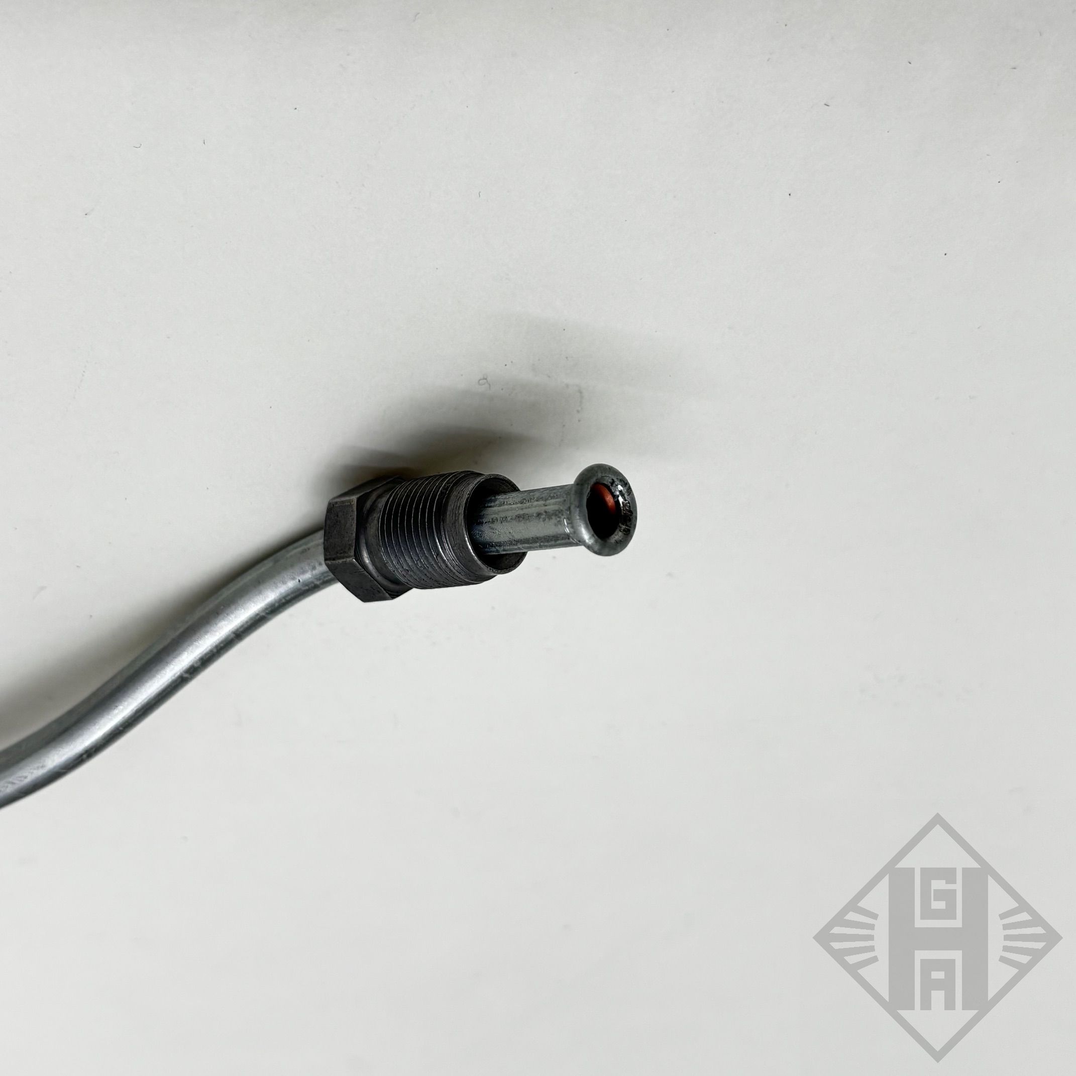 Die 6mm Stahlrohrleitung, beschichtet, ist bereits vorgeborgen und mit Überwurfschrauben M12x1 gebördelt.