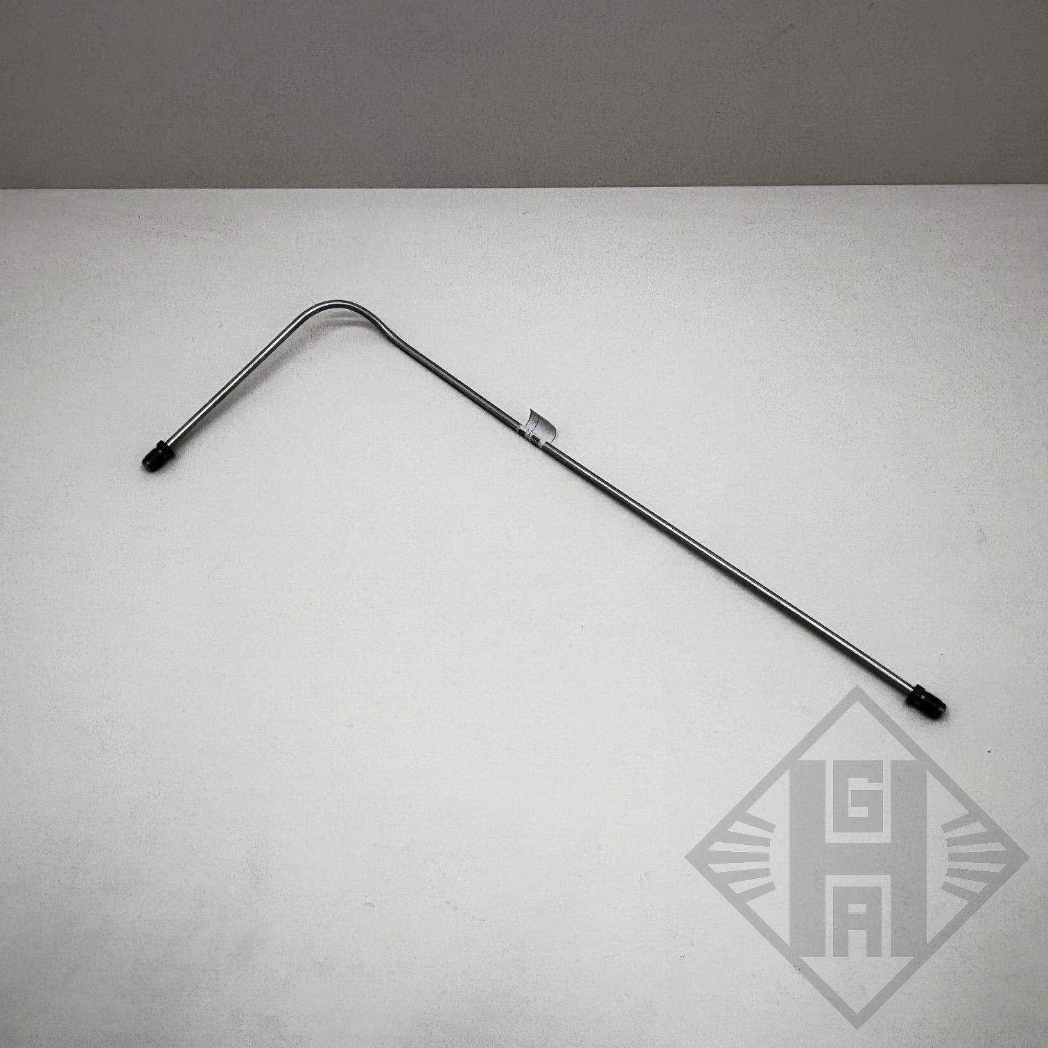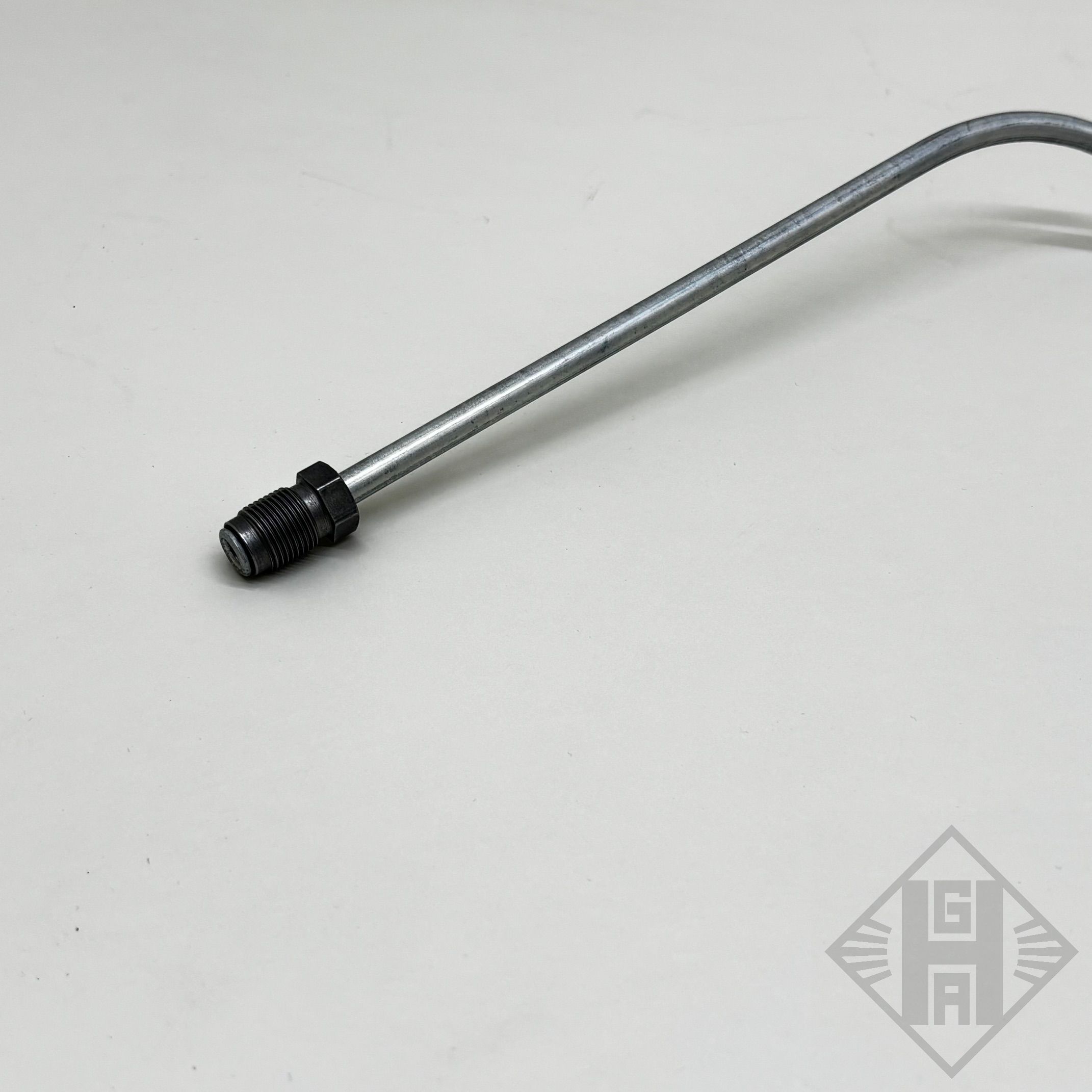 Die starre Leitung, Stahlrohr beschichtet, verläuft vom Verteiler vorn zum Rohrverbinder links.