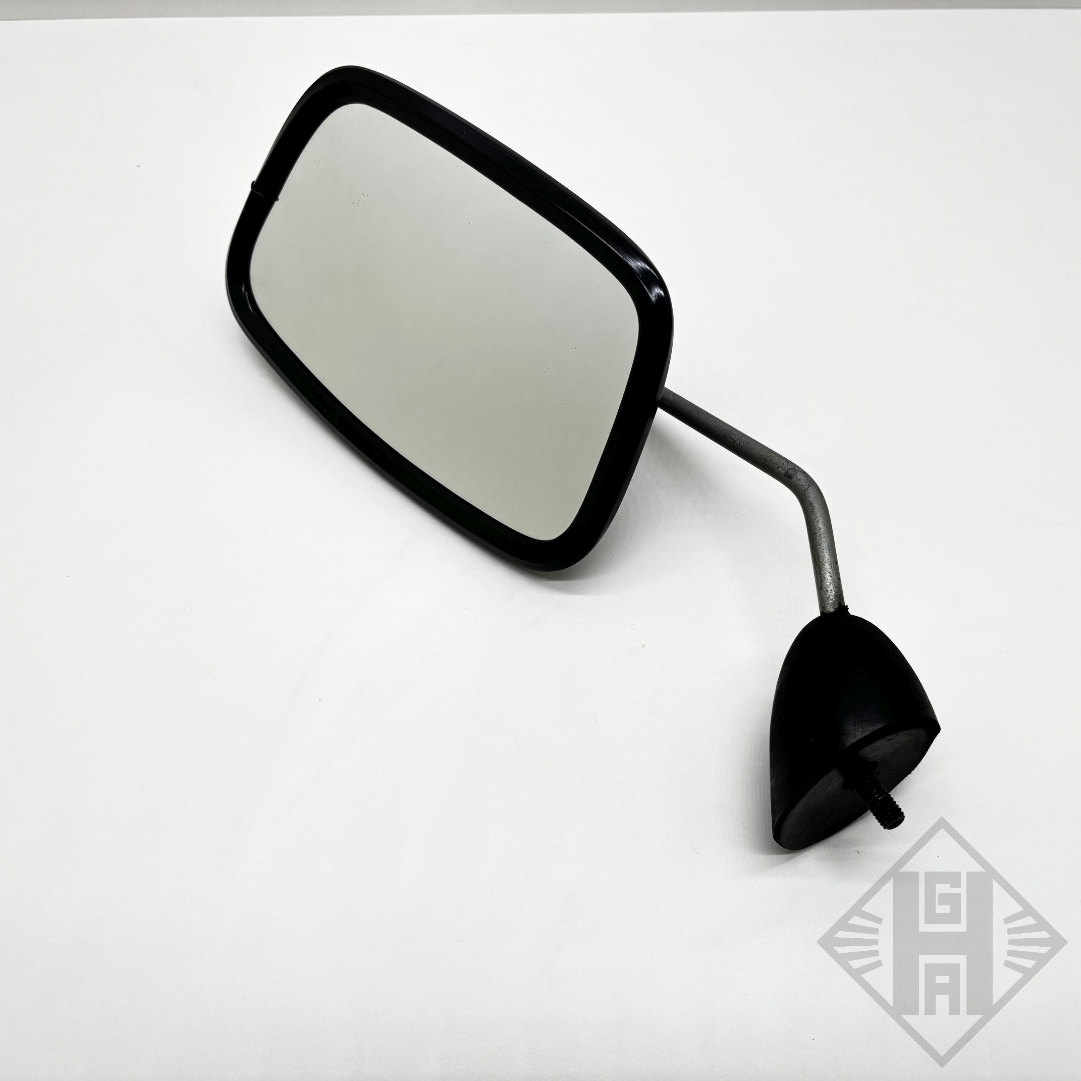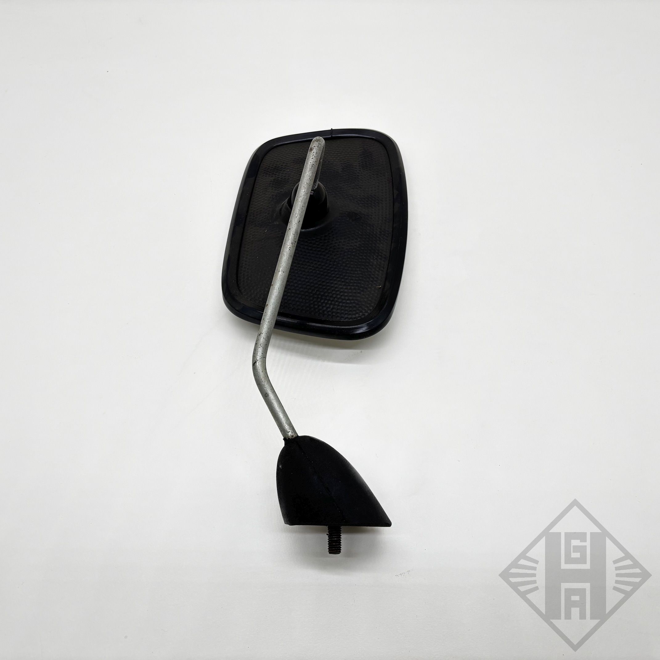 Es handelt sich um die Ausführung mit gewinkelter Spiegelstange und Gummifuß.