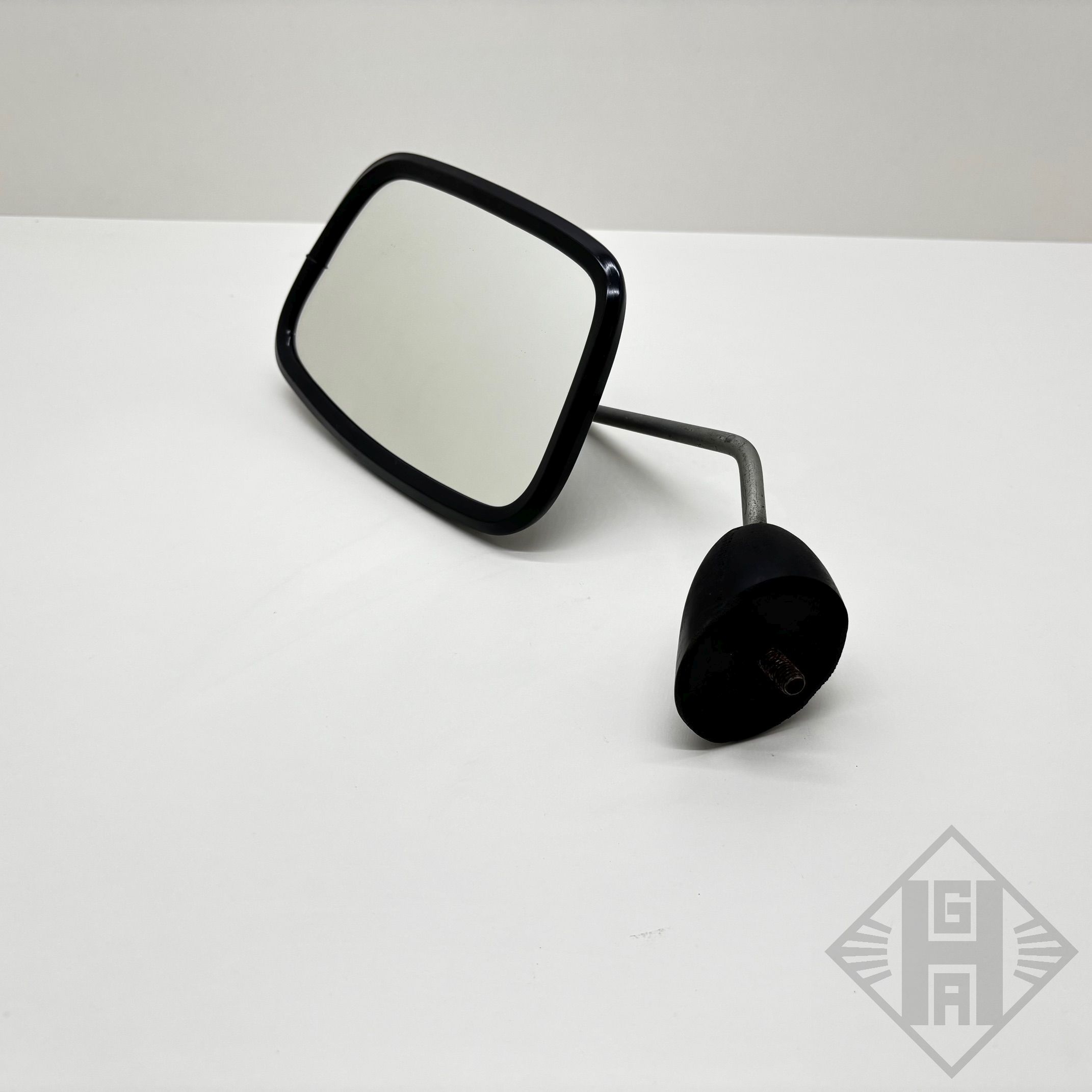 Geliefert wird der Rückspiegel komplett mit Stange, Fuß, Gehäuse und Spiegelglas.
